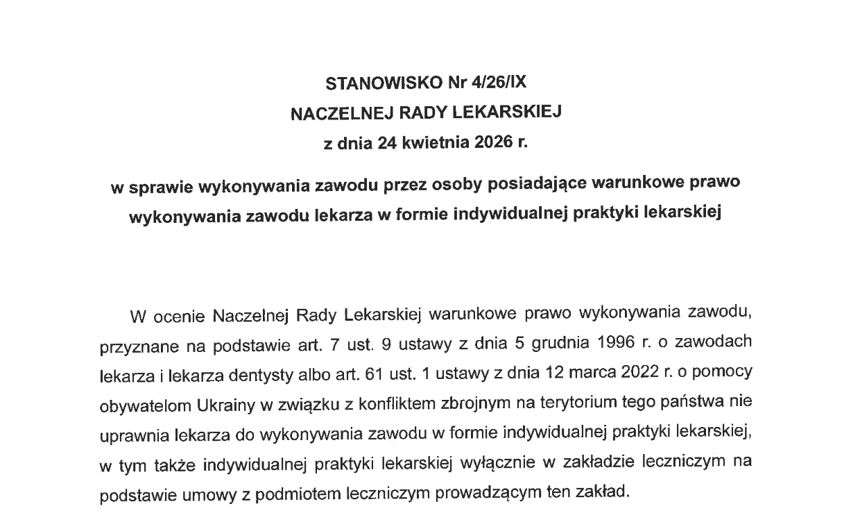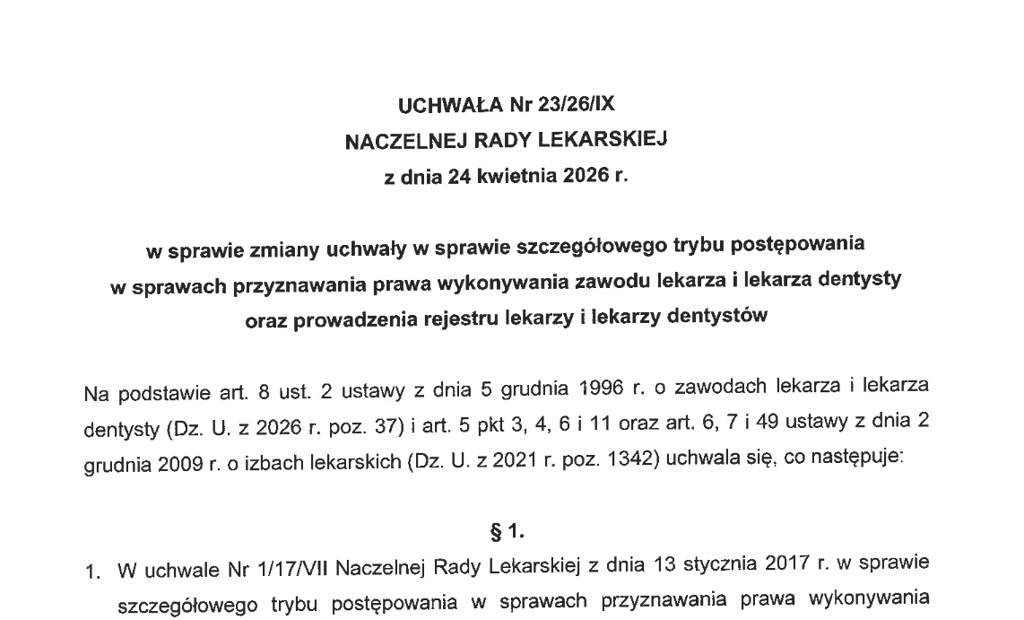 Uchwała Nr 23/26/IX Naczelnej Rady Lekarskiej z dnia 25 kwietnia 2026r.