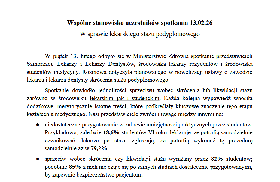 Stanowisko Prezydium Konwentu Prezesów Okręgowych Rad Lekarskich z dnia 12 marca 2026 r.