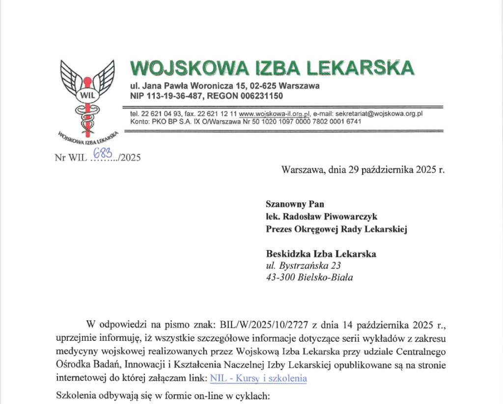 Okręgowa Izba Lekarska w Warszawie serdecznie zaprasza lekarzy i lekarzy dentystów do uczestnictwa w XXII Mistrzostwach Polski Lekarzy i VI Mistrzostwach Polski Lekarzy Oldboyów w piłce siatkowej, które odbędą się 14-15 listopada 2025 r. Harmonogram wydarzenia 14 listopada 2025 r. – inauguracja mistrzostw podczas Gali Komisji Sportu OIL, która rozpocznie się o godz. 18.00 na stadionie Legii Warszawa (ul. Łazienkowska 3). 15 listopada 2025 r. – turniej od godz. 9.00 w hali GOSiR Stare Babice (ul. Południowa 2B, Zielonki-Parcela) Zgłoszenia Zespoły należy zgłaszać do 30 października 2025 r., przesyłając: nazwę zespołu, imienną listę zawodników (wraz z wyszczególnieniem zawodników, którzy wezmą udział w inauguracji Mistrzostw 14 listopada), dokładny adres Okręgowej Izby Lekarskiej, numer telefonu kierownika drużyny. Zgłoszenia prosimy przesyłać na adres: krzysztofmakuch@hipokrates.org Wpisowe: 100 zł od uczestnika – płatne do 30 października 2025 r. na konto OIL w Warszawie z dopiskiem „MPL SIATKÓWKA + nazwa zespołu” Numer konta: 27 1240 6247 1111 0000 4974 2369 Kontakt i informacje: Krzysztof Makuch, tel. 608 200 190, krzysztofmakuch@hipokrates.org https://izba-lekarska.pl/wydarzenia/wydarzenia-sportowe/siatkowka/xxii-mistrzostwa-polski-lekarzy-i-v-mistrzostwa-polski-lekarzy-oldboyow-w-pilce-siatkowej.html