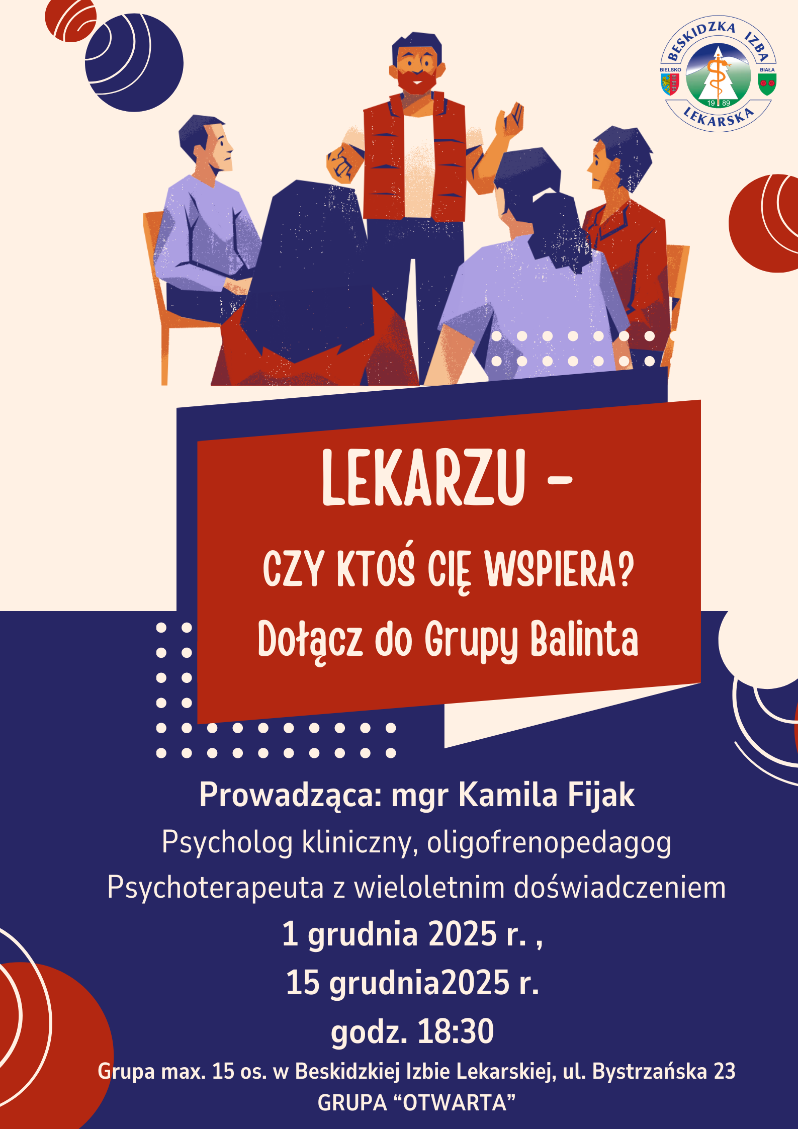 | Lekarzu Czy Ktoś Cię Wspiera? Dołącz do Grupy Balinta | 1768780800 19/01/2026 - 20/01/2026 |