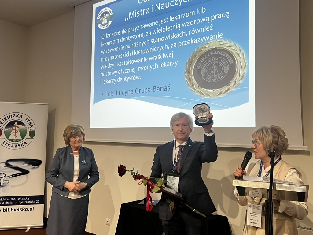 - Odznaczenie „Mistrz i Nauczyciel” otrzymała lek. Lucyna Gruca-Banaś za wieloletnią, wzorową pracę zawodową, zaangażowanie w kształcenie młodego pokolenia kadr oraz kształtowanie postaw etycznych lekarzy.